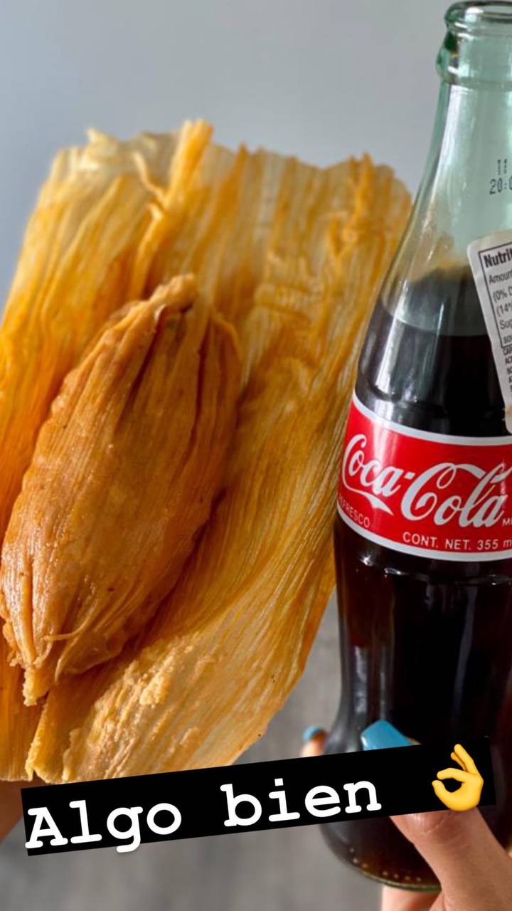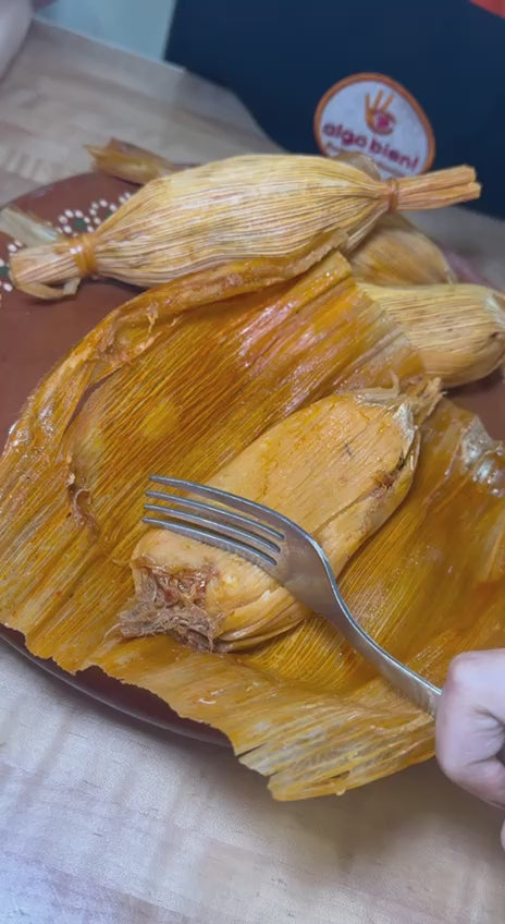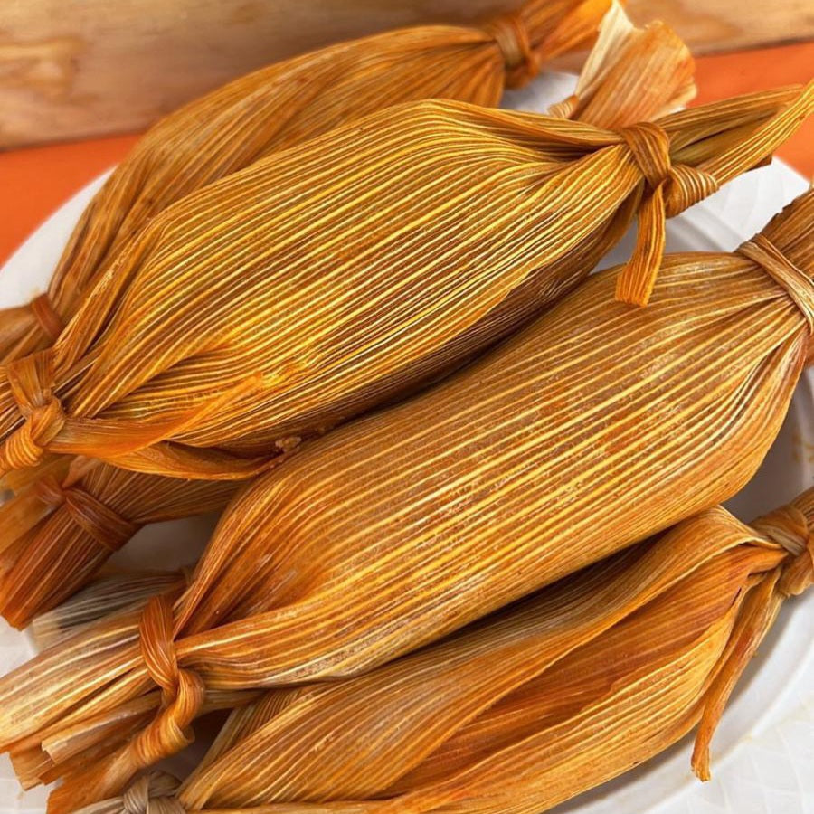 Tamal Sinaloense con carne de puerco y Chile colorado con verduras.