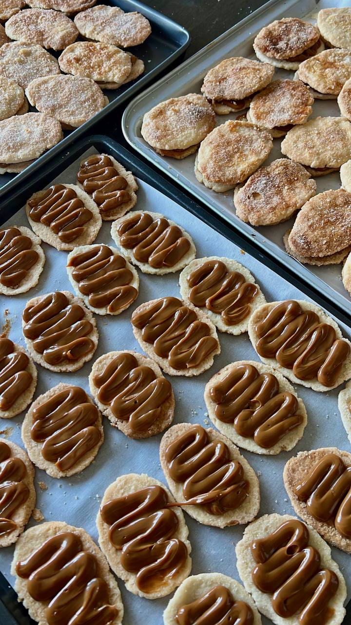 Caja con galletas dorditas dobles con relleno de dulce de leche